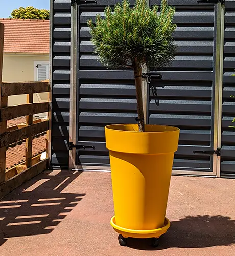 Harmonie des couleurs avec sa soucoupe à roulettes assortie. Toujours plus de facilité à le déplacer.